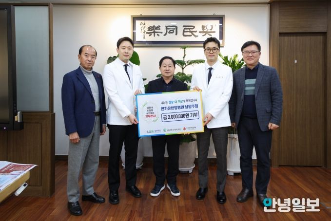 안녕일보 배윤 기자 | 남양주시는 8일 호평동 한가온한방병원 남양주점(대표원장 김주찬, 전찬구)이 지역 내 취약계층 지원을 위해 후원금 300만 원을 기탁했다고 밝혔다.