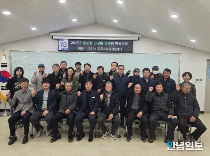 안녕일보 배윤 기자 | 김포시고구마연구회는 지난 7일 회원 농가 20여 명이 참석한 가운데 김포시농업기술센터 엘리트교육관에서 2026년 연시총회를 개최했다.