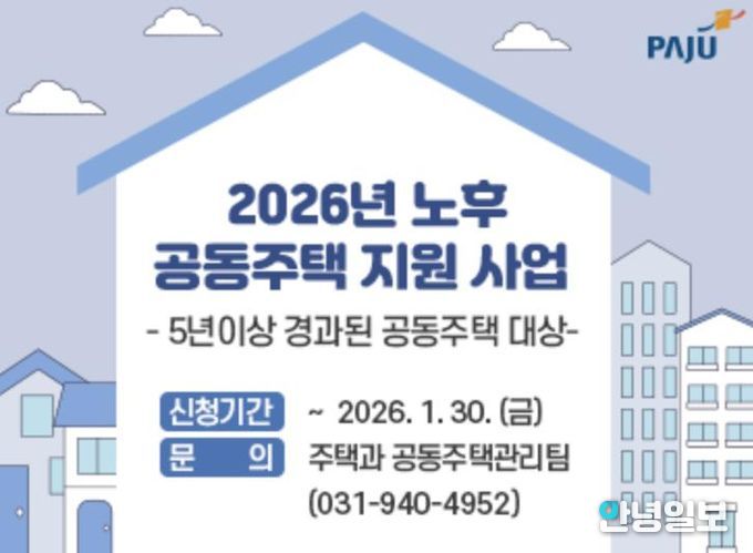 신청 기한은 오는 30일까지이며, 파주시청 주택과를 방문해 신청하거나 등기우편으로 신청서를 제출하면 된다. 선정된 단지는 현장 조사와 심의를 거쳐 2026년 11월까지 사업을 추진하게 된다.