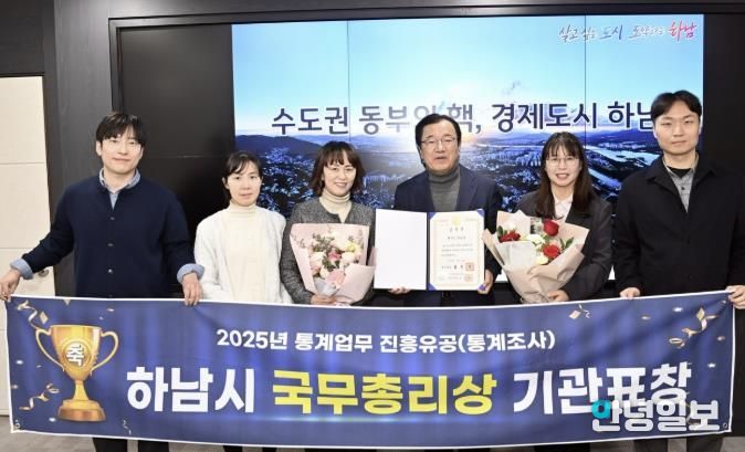 안녕일보 배윤 기자 | 하남시는 국가데이터처가 주관하는 통계조사에서 통계업무 발전에 기여한 공로를 인정받아 2026년 1월 9일 통계인재개발원에서 ‘2025년 통계업무 진흥유공’부문 국무총리 기관표창을 수상했다고 밝혔다.
