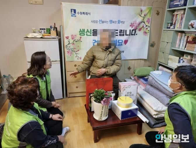 안녕일보 배윤 기자 | 수원시 팔달구 화서2동 지역사회보장협의체는 지난 13일, 관내 저소득 홀몸 어르신 가정을 직접 방문해 생신을 축하 드리고 안부를 확인하는 ‘사랑을 선물하는 행복한 꽃배달(선행꽃) 사업을 추진했다.