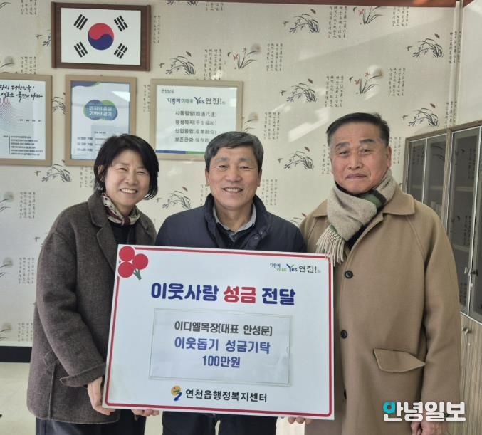 이순미 연천읍장은 “지역사회를 향한 따뜻한 나눔을 실천해 주신 안성문 대표님께 감사드린다”며 “전해주신 소중한 마음이 이웃들에게 온전히 전달될 수 있도록 세심하게 살피고 지원하겠다”고 말했다.