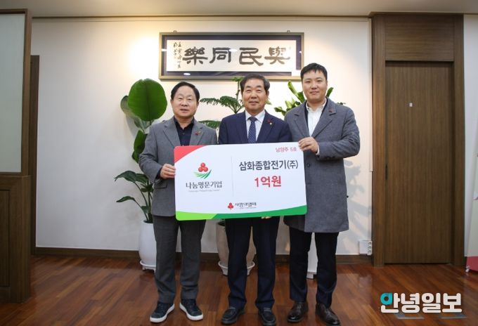 안녕일보 배윤 기자 | 남양주시는 14일 삼화종합전기가 사회복지공동모금회의 고액 기부 프로그램인 ‘나눔명문기업’ 5호로 가입하고, 지역 내 취약계층 지원을 위해 1억 원 기부를 약정했다고 밝혔다.
