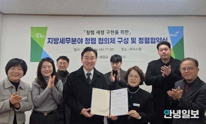 안녕일보 배윤 기자 | 파주시는 지난 14일 파주지역세무사회(마을세무사)와 함께 청렴 문화의 정착과 확산을 위한 민관 청렴협의체를 구성하고, 청렴 실천을 위한 협약을 체결했다고 밝혔다.