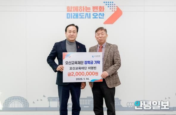 안녕일보 배윤 기자 | 오산시는 지난 14일 오산교육재단 이영빈 상임이사가 특기생 등 지역 인재 육성을 위해 장학금 200만 원을 기탁했다고 밝혔다.