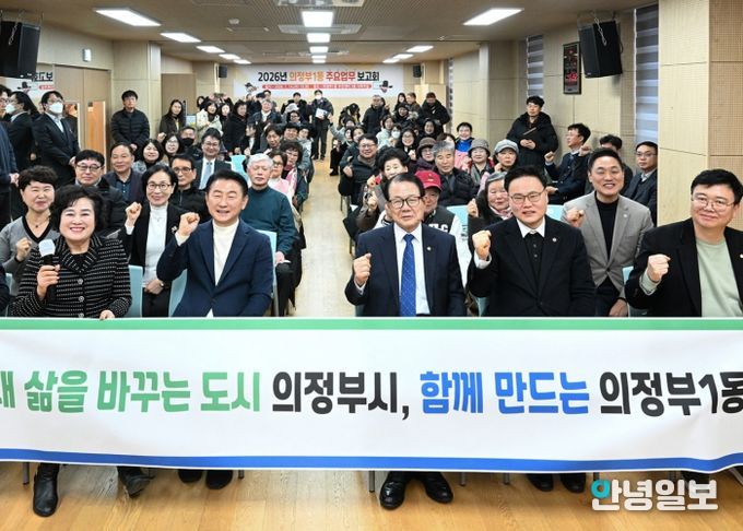 안녕일보 배윤 기자 | 의정부시 의정부1동주민센터는 1월 14일 주민센터에서 시장, 도‧시의원, 지역 단체장, 주민 등이 참석한 가운데 ‘2026년 의정부1동 주요업무보고회’를 열고 동 현안과 올해 핵심사업 추진 방향을 공유했다.