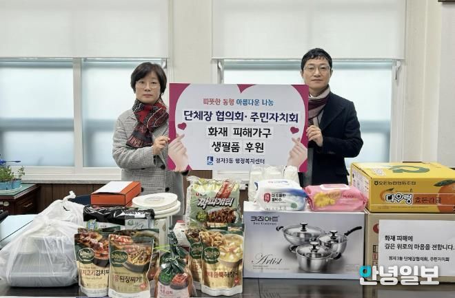 안녕일보 배윤 기자 | 장안구 정자3동 주민들이 지난 13일 발생한 관내 아파트 화재 피해 가구를 돕기 위한 나눔에 참여해 온정을 전달했다.