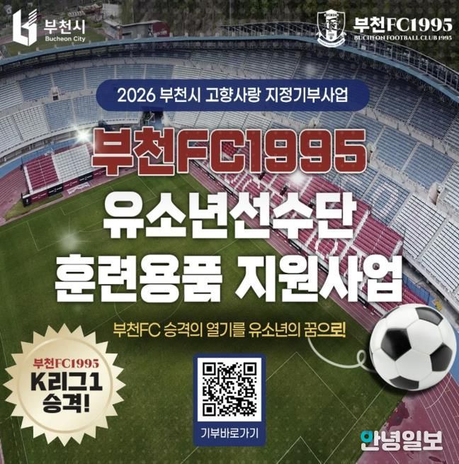 이번 지정기부사업은 10월까지 모금을 진행하며, 대상은 ‘부천FC1995 유소년 선수단 훈련용품 지원’(2천만 원)과 ‘맘(Mom)편한 택시 고향사랑 더하기’(3천만 원) 총 2개 사업이다.