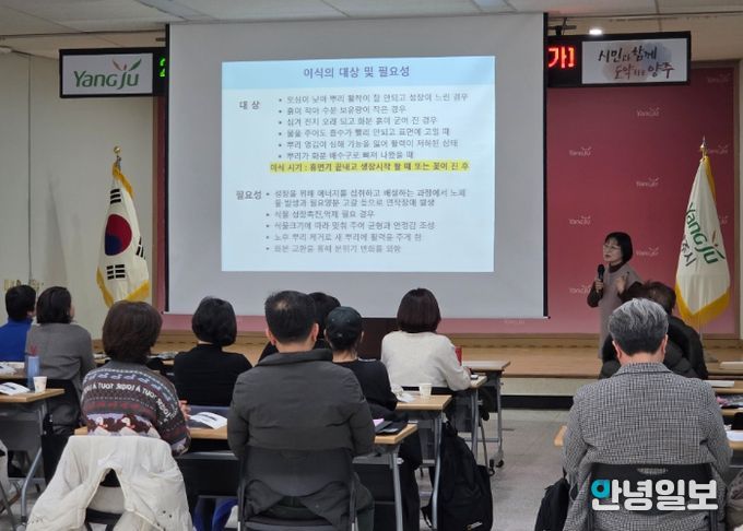 안녕일보 배윤 기자 | 양주시가 지난 16일 농업기술센터 내 교육장에서 도시농업 활성화와 전문 인력 양성을 위한 ‘도시텃밭전문가 교육’을 개최했다.