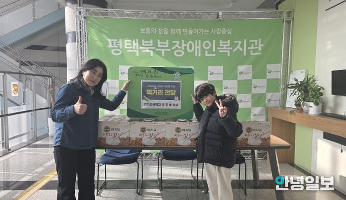 안녕일보 배윤 기자 | 평택북부장애인복지관은 1월 16일 14시, 이충동 반지초등학교 오윤호 학생으로부터 먹거리(두유 20박스)를 후원받았다.