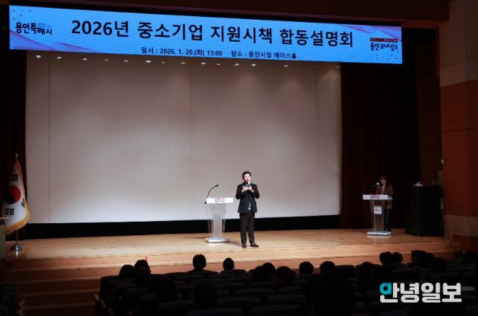 안녕일보 배윤 기자 | 용인특례시는 20일 시청 에이스홀에서 지역 내 중소기업 지원 정책을 설명하는 ‘2026년 중소기업 지원시책 합동설명회’를 열었다.