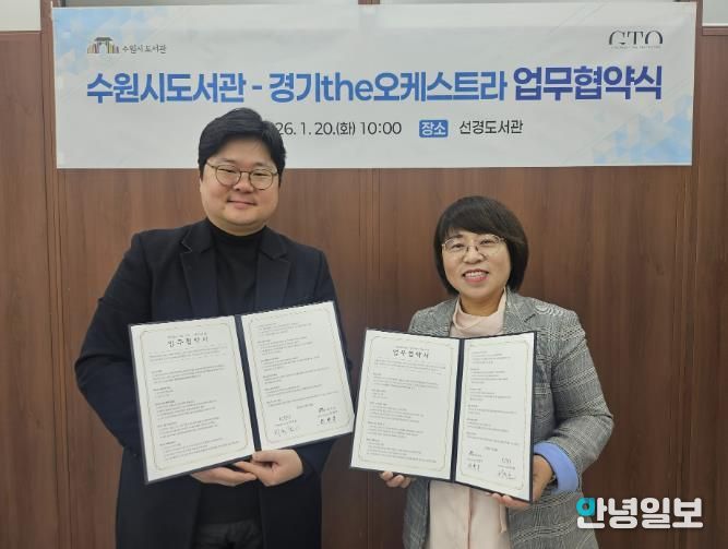 안녕일보 배윤 기자 | 수원시도서관은 경기더(the)오케스트라는 20일 수원시 도서관사업소에서 업무협약을 체결하고, 공공도서관을 중심으로 한 시민 참여형 문화예술 프로그램 운영에 협력하기로 했다.