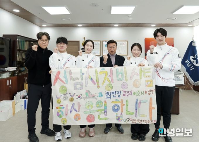 안녕일보 배윤 기자 | 성남시는 1월 21일 오전 11시 30분 시장 집무실에서 ‘2026 이탈리아 밀라노·코르티나담페초 동계올림픽(2.6~22)’ 출전을 앞둔 시청 소속 빙상팀 선수단과 간담회를 열고, 선전을 기원하며 격려했다.