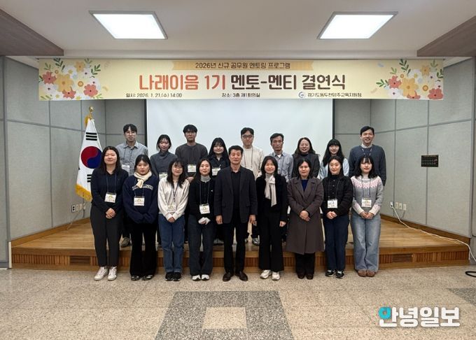 안녕일보 배윤 기자 | 동두천양주교육지원청은 신규공무원의 조기 공직 적응을 지원하기 위해 1월 21일, 동두천양주교육지원청에서 ‘나래이음 1기 결연식’을 개최한다. ‘나래이음’은 동두천양주 신규공무원 대상 교육프로그램 중 멘토링 프로그램의 명칭으로, 연간 멘토링을 통해 직무 역량과 정서적 안정을 함께 지원하고 선후배 간 소통과 공감을 기반으로 한 조직문화 조성을 목적으로 운영된다.