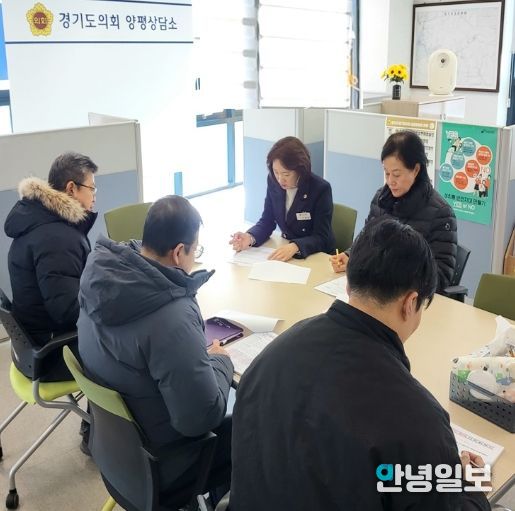 안녕일보 배윤 기자 | 경기도의회 박명숙 의원(국민의 힘, 양평 1)과 이혜원 의원 (국민의힘, 양평 2) 은 22일 양평군청 기획 예산담당관 관계자로부터 ‘경기 생활 쏙(SOC) 환원 사업’ 공모 추진 계획을 보고받고 사업 방향에 대해 함께 논의하는 시간을 가졌다.