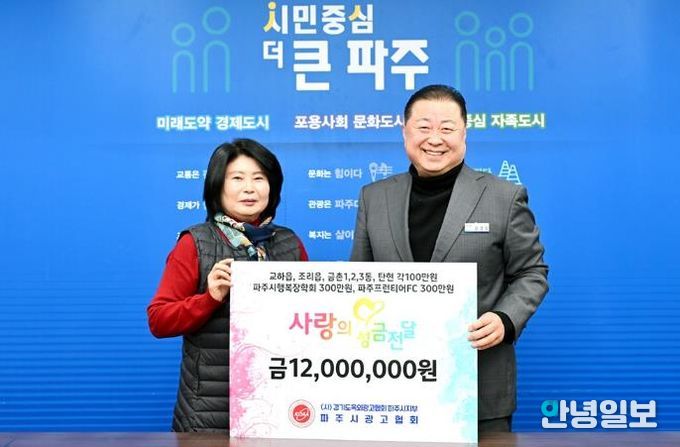 안녕일보 배윤 기자 | 파주시는 22일 파주시광고협회로부터 지역 내 어려운 이웃을 위한 ‘사랑의 이웃 돕기’성금 1,200만 원을 기탁받았다고 밝혔다.