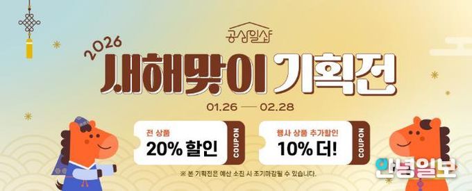 안녕일보 배윤 기자 | 경기도주식회사는 경기도 사회적경제제품 온라인몰인 공삼일샵(031#)에서 26일부터 다음 달 28일까지 ‘2026 새해맞이 기획전’을 펼친다.