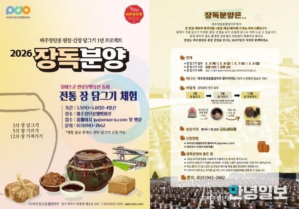 안녕일보 배윤 기자 | 파주시 출자기관인 ㈜파주장단콩웰빙마루에서는 2026 장독분양 신청자를 본격 모집한다.