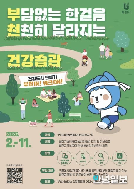 안녕일보 배윤 기자 | 부천시는 2월부터 11월까지 부천페이 카드를 소지한 시민을 대상으로 ‘부천IN! 워크ON!’ 걷기 챌린지를 본격 운영한다.