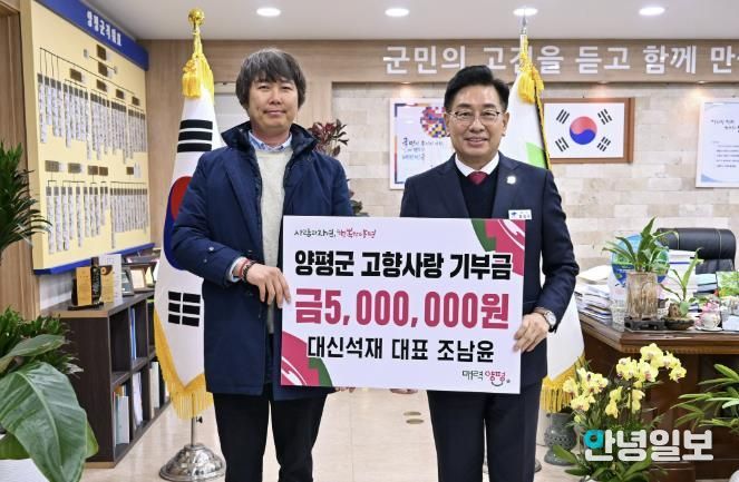 안녕일보 배윤 기자 | 양평군은 지난 26일 군청 군수 집무실에서 대신석재 조남윤 대표의 고향사랑기부금 전달식을 개최했다고 밝혔다.