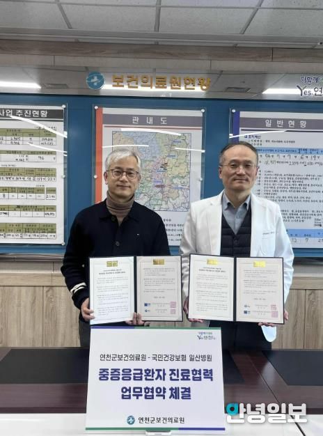 안녕일보 배윤 기자 | 연천군보건의료원은 지난 23일 국민건강보험 일산병원과 중증응급환자의 신속한 이송과 진료협력을 위한 업무협약을 맺었다.