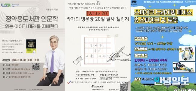 행사는 겨울 독서문화프로그램을 중심으로 △정약용 인문학 특강 △저자 강연 △시민 참여형 체험행사 등이 포함된다.