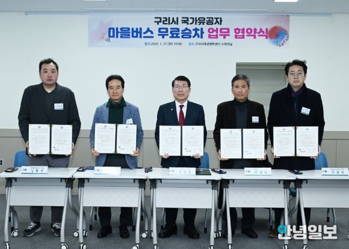안녕일보 배윤 기자 | 구리시는 지난 1월 27일 관내 4개 마을버스 운수사업자와 ‘구리시 국가유공자 마을버스 무료 승차 사업’ 협약을 체결하고, 오는 2월 1일부터 상이 국가유공자가 관내 마을버스를 무료로 이용할 수 있도록 지원하는 제도를 시행한다고 밝혔다.