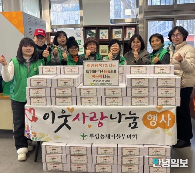 안녕일보 배윤 기자 | 안양시 동안구 부림동 새마을부녀회는 지난 28일 오전 10시, 설 명절을 앞두고 관내 독거노인 세대를 대상으로 ‘희망·행복 1% 나눔행사’를 가졌다고 29일 밝혔다.