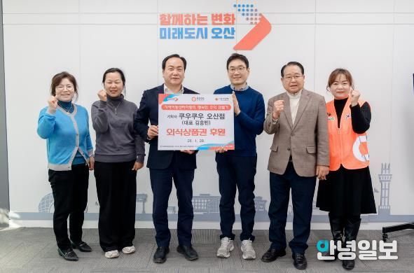 안녕일보 배윤 기자 | 오산시는 지난 28일 쿠우쿠우 오산점이 지역아동센터 이용 아동들의 건강한 성장과 행복한 추억 만들기를 위해 2026년 한 해 동안 ‘1일 1가정 외식상품권’을 후원하기로 했다고 밝혔다.