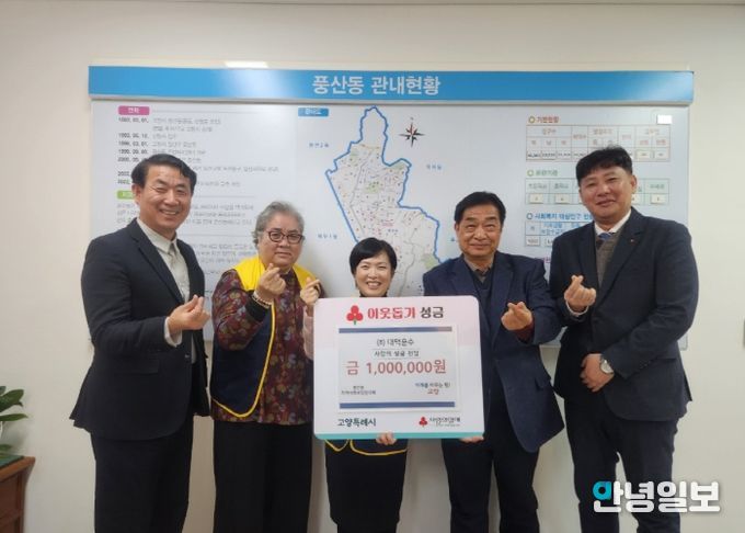 기부금은 풍산동 찾아가는복지팀을 통해 저소득 가구, 독거노인, 장애인 등 지역 취약계층을 위한 다양한 복지사업에 사용될 예정이다.