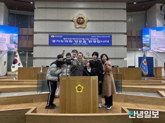 안녕일보 배윤 기자 | 경기도의회 농정해양위원회 이오수 의원(국민의힘, 수원9)은 29일 경기도의회에서 진행된 ‘경기마루 견학’에 참석해 광교종합사회복지관 부설 별무리장애인주간이용시설 이용자와 원장, 선생님 등 시설 관계자들과 뜻깊은 시간을 가졌다.