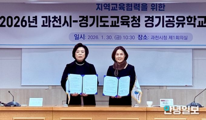 안녕일보 배윤 기자 | 안양과천교육지원청은 1월 30일, 과천시청에서 과천시 (시장 신계용)와 지역의 교육자원을 활용한 학생 맞춤형 미래교육 확대와 지속 가능한 지역교육협력 체계 구축을 위해 '2026 지역교육협력을 위한 과천시–경기도 교육청 경기공유학교 업무협약'을 체결했다.