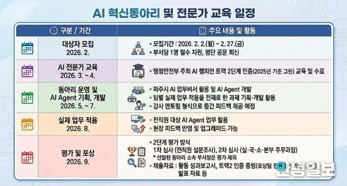 파주시 관계자는 “단순히 인공지능(AI)을 배우는 수준을 넘어, 공무원이 직접 인공지능(AI)을 설계해 행정 환경을 바꾸는 것이 이번 사업의 본질”이라며 “인공지능(AI) 혁신동아리를 통해 전 직원이 인공지능(AI)과 협업하며 시민들에게 더 빠르고 정확한 행정 서비스를 제공할 수 있도록 최선을 다하겠다”라고 말했다.