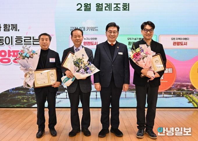 안녕일보 배윤 기자 | 양평군은 2일 군청 대회의실에서 열린 2월 중 월례조회에서 일상 속 위급한 상황에서 이웃의 생명과 안전을 지킨 선행 군민 3명에게 표창을 수여했다.