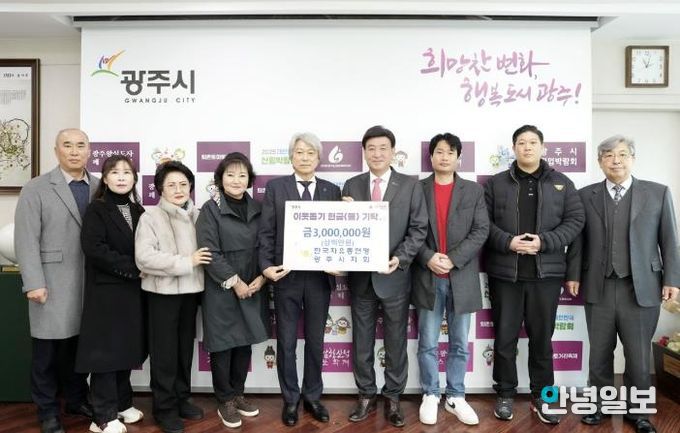 안녕일보 배윤 기자 | 한국자유총연맹 광주시지회는 지난 2일 광주시청을 방문해 지역 내 어려운 이웃을 돕기 위한 성금 300만 원을 기탁했다.