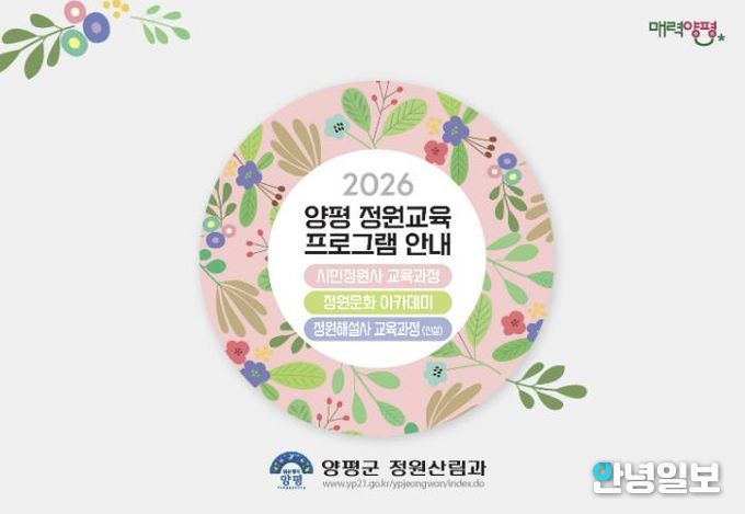 안녕일보 배윤 기자 | 양평군은 올해 제14회 경기정원문화박람회 개최를 앞두고, 특별 신설 교육과정을 포함한 2026년 정원교육 운영계획을 발표했다. 양평군 정원교육은 △시민정원사 △정원문화아카데미 △정원해설사 등 세 가지 분야로 운영된다.