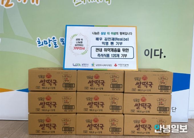 안녕일보 배윤 기자 | 남양주시는 지난달 30일, 배우 김민재(Real.be)의 팬 A씨가 설 명절을 맞아 지역 내 도움이 필요한 이웃을 위해 즉석식품 120개를 기부했다고 3일 밝혔다.