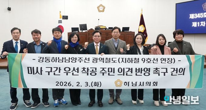 안녕일보 배윤 기자 | 하남시의회가 3일 올해 첫 회기인 제345회 임시회를 열고 ‘2026년도 시정주요업무계획 보고’를 청취하고 시정발전을 위한 다양한 대안을 제시한다.