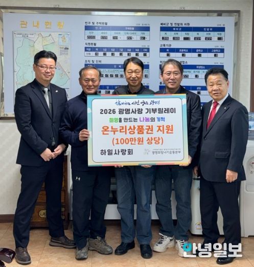 안녕일보 배윤 기자 | 광명시 하안1동 하일사랑회는 지난 2일 설 명절을 맞아 관내 저소득 20가구에 온누리상품권 100만 원(가구당 5만 원)을 전달했다.