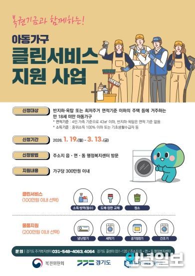 안녕일보 배윤 기자 | 경기도에서 열악한 주거환경에 거주하는 아동가구들을 위한 ‘아동가구 클린서비스 지원 사업’을 복권기금과 함께 추진한다.