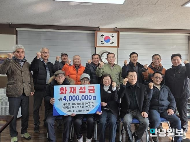 파주읍 이장협의회는 성금 전달에 앞서, 화재 직후 장비를 동원해 전소된 주택내부 시설과 폐기물을 정리하는 등 신속한 복구 지원에도 나섰다.