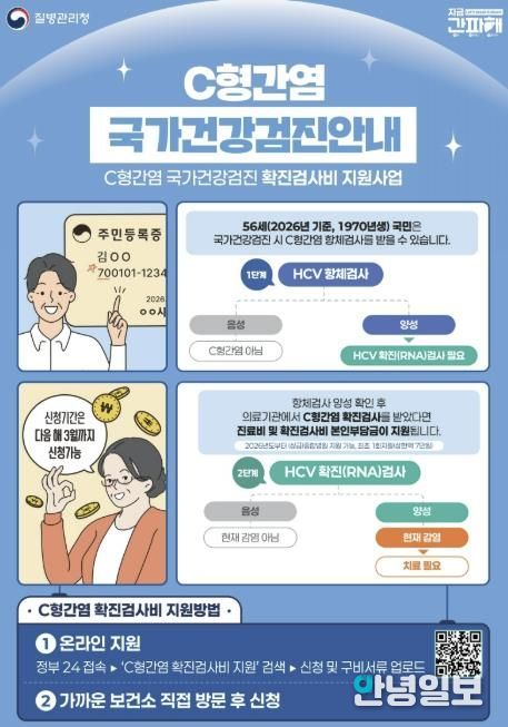 안녕일보 배윤 기자 | 부천시는 국가건강검진에서 C형간염 항체 양성 판정을 받은 56세(1970년생) 시민을 대상으로 C형간염 확진검사 비용을 지원한다. 이번 사업은 C형간염 항체 양성자에 대한 확진검사비를 지원해 조기 치료를 유도하고 검진의 실효성을 높이기 위해 추진된다.