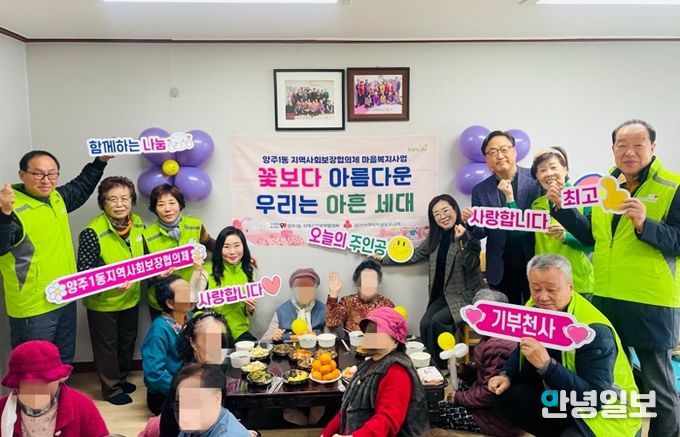 안녕일보 배윤 기자 | 양주시 양주1동은 지역사회보장협의체가 최근 정서적 고립감을 느끼는 산북4통 90세 이상 어르신들을 대상으로 경로당에서 '꽃보다 아름다운 우리는 아흔 세대' 사업을 추진했다고 밝혔다.