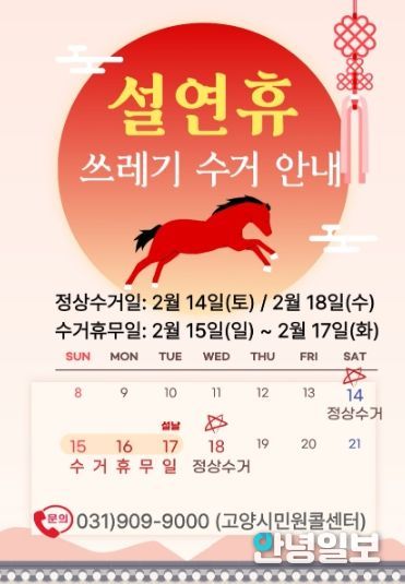 안녕일보 배윤 기자 | 고양특례시 일산서구는 설 연휴 기간 주민 불편을 최소화하고 쾌적한 도시환경을 유지하기 위해 오는 14일부터 18일까지 5일간 생활폐기물 관리대책을 추진한다.