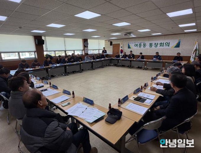 안녕일보 배윤 기자 | 여주시 여흥동은 6일 오전, 행정복지센터 2층 회의실에서 제10대 김광덕 부시장과 함께하는 2월 1차 통장회의를 개최했다. 회의에는 김광덕 부시장, 김영완 여흥동장, 정지남 홍문지구대장, 이병길 여주농협조합장 및 33개 마을 통장이 참석했다.