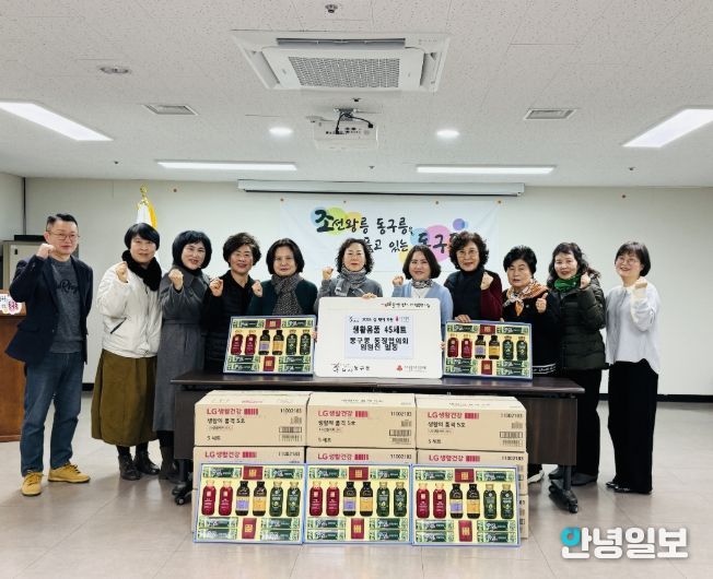안녕일보 배윤 기자 | 구리시 동구동 행정복지센터는 설 명절을 맞아 지난 6일 동구동 행정복지센터 대회의실에서 동구동 통장협의회 임원진으로부터 생활용품 선물 세트 45개를 전달받았다고 밝혔다.