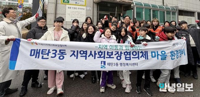 안녕일보 배윤 기자 | 영통구 매탄3동은 지난 11일 지역사회보장협의체, 지역아동복지센터, 관계 공무원 등 40여 명이 참여해 환경 정비 활동을 실시했다.