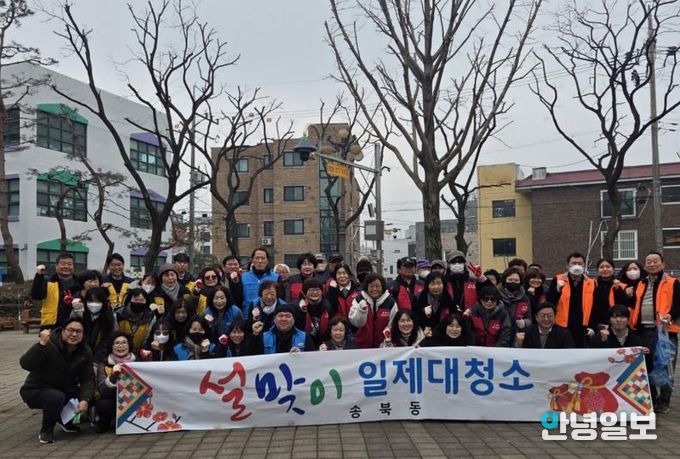 안녕일보 배윤 기자 | 평택시 송북동 행정복지센터에서 지난 11일 관계단체와 공직자 등 80여 명이 참여하여 민속 명절인 설을 맞아 우리 동네 새 단장을 위한 ‘설맞이 일제 대청소’를 실시했다.