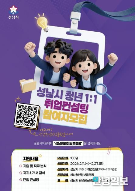 성남시 관계자는 “이번 1대1 취업 컨설팅을 통해 청년들의 취업 역량과 자신감을 높여 실질적인 구직 성과로 이어지길 기대한다”고 말했다.