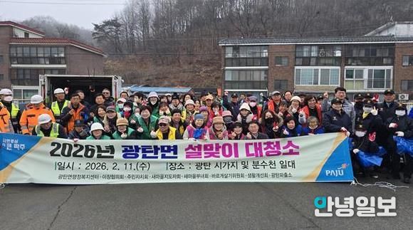 안녕일보 배윤 기자 | 파주시 광탄면은 지난 11일 광탄 시가지와 분수천 일대에서 민관 합동으로 설맞이 대청소를 실시했다.